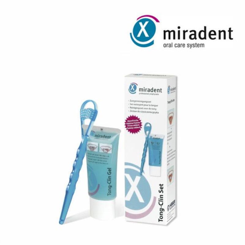 Froomo, маркетплейс професійної косметики та товарів для здоров'я\\Набір для очищення язика Tong Clin Miradent, Гель 50 мл і скребок-щітка, Набір Tong Clin Мірадент