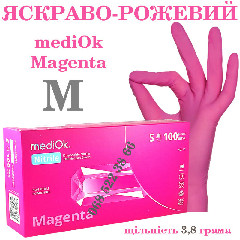 Рукавиці нітрилові рожевий Mediok Magenta розмір M, щільність 3.8г, уп.100 шт