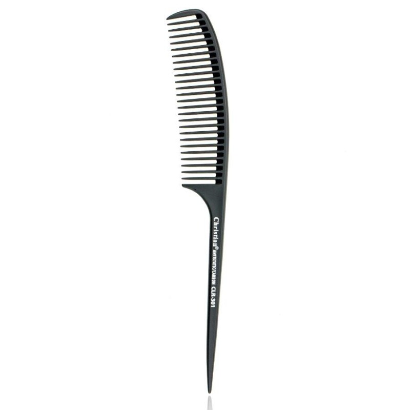 Froomo, маркетплейс професійної косметики та товарів для здоров'я\\Гребінець для волосся карбоновий антистатичний крупнозубий з хвостиком Christian CLR-301