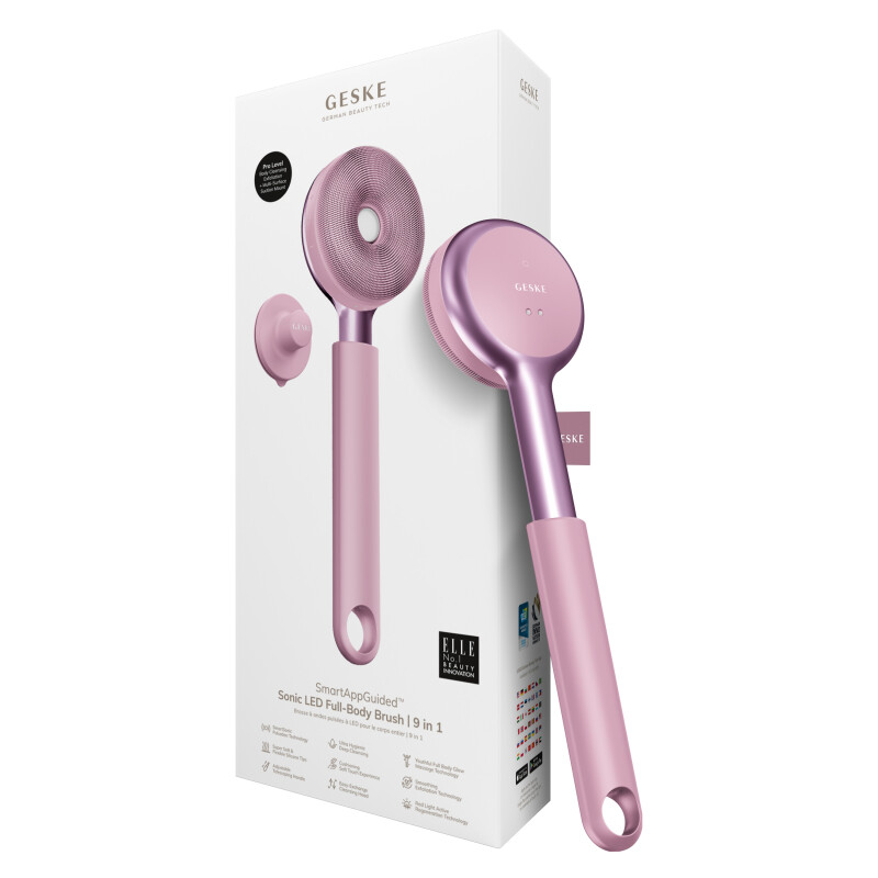 Froomo, маркетплейс професійної косметики та товарів для здоров'я\\Звукова світлодіодна щітка для всього тіла GESKE Sonic LED Full-Body Brush&Intensive Exfoliator 9 в 1 pink