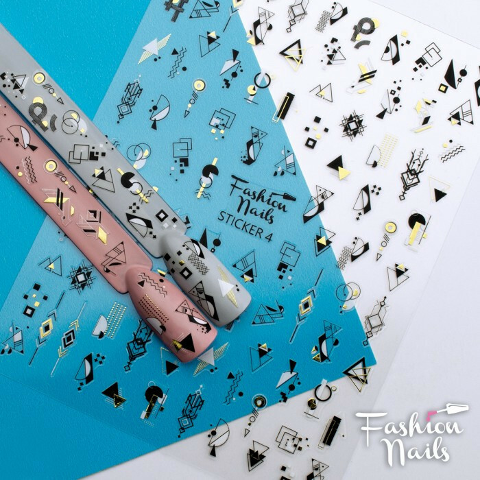 Froomo, маркетплейс професійної косметики та товарів для здоров'я\\Стікер для нігтів STICKER 4 Fashion Nail на клейкій основі - Чорно-білі слайдери Геометрія на липкій основі