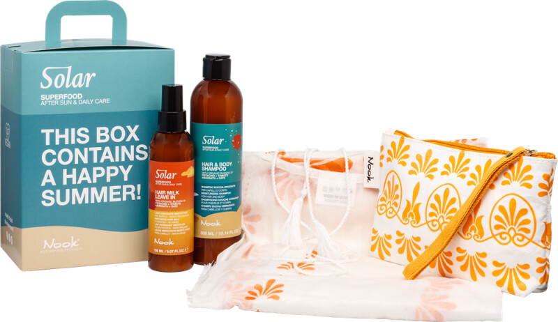 Набір Nook SOLAR Шампунь 300мл + Молочко 150мл + Накидка + Сумка-клатч