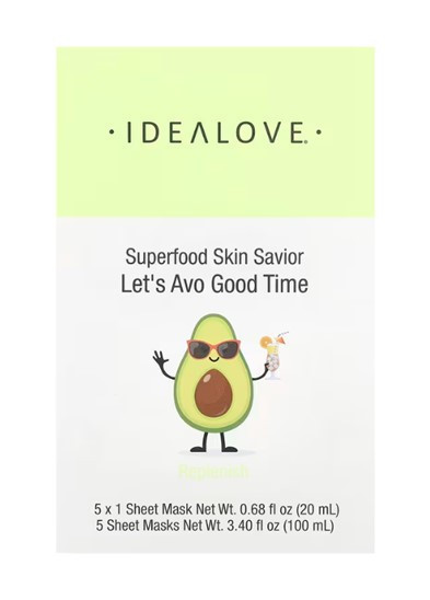Idealove, Superfood Skin Savior, тканинні косметичні маски із суперфудами, авокадо 1 шт. 20 мл