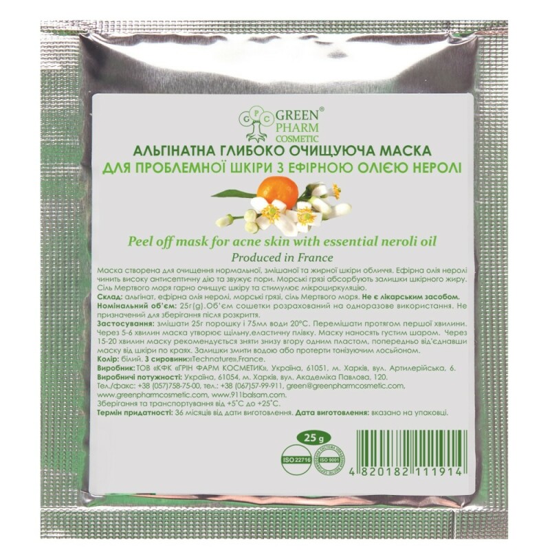 Froomo, маркетплейс професійної косметики та товарів для здоров'я\\Альгінатна маска з ефірною олією неролі Peel Off Mask For Acne Skin
