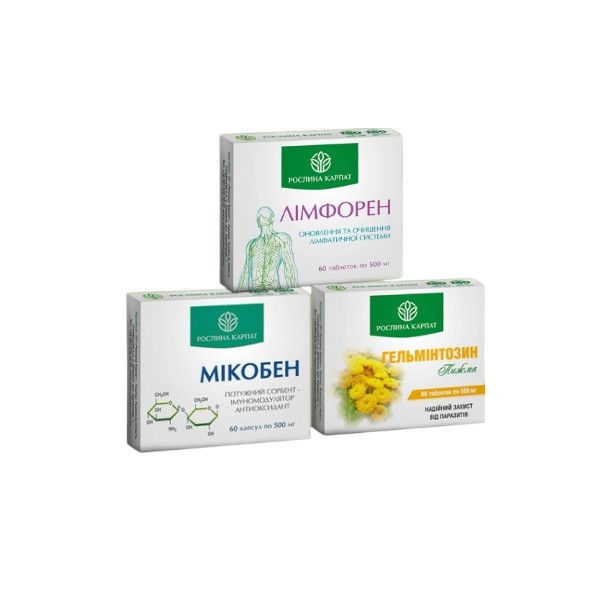 Ефективна програма очищення від паразитів, Мікобен, Лімфорен, Гельмінтозин - Рослина Карпат - 180 шт