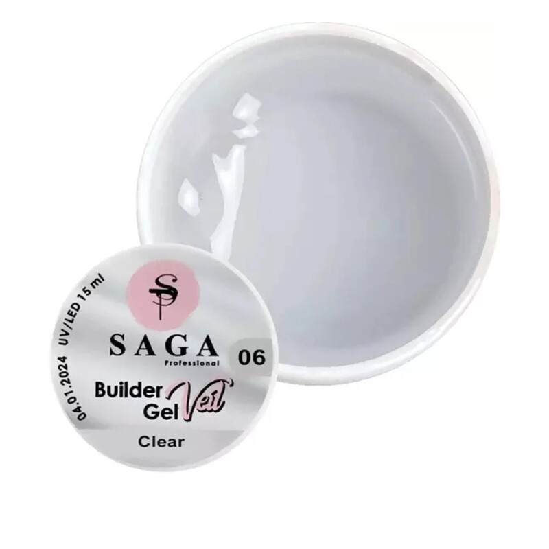 Froomo, маркетплейс професійної косметики та товарів для здоров'я\\Гель для нарощування SAGA Professional Builder Gel Veil №06 Clear 15 мл, 15.0