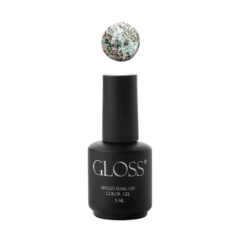 Гель-лак для нігтів сріблястий з голографічними блискітками GLOSS Gel Polish №410, 5 ml