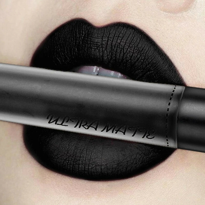 Губна помада QiBEST №12 Ultra Matte чорна водостійка матова