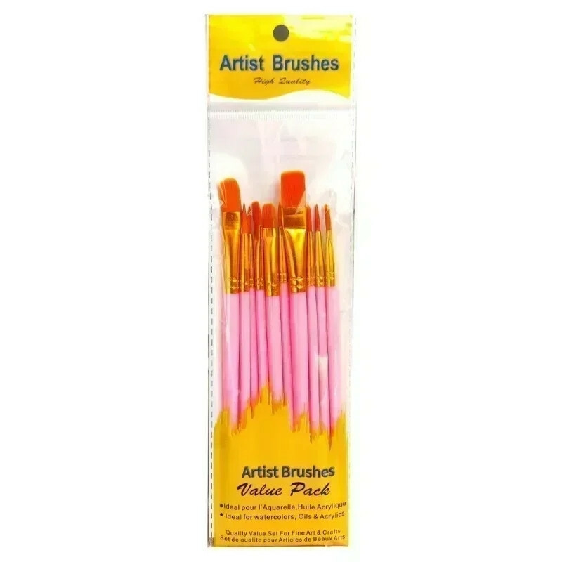 Froomo, маркетплейс професійної косметики та товарів для здоров'я\\Набір із 10 шт. пензлів для бодіарту Artist Brushes рожеві