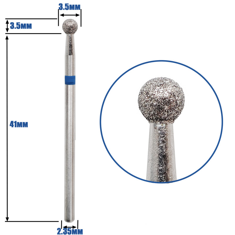 Froomo, маркетплейс професійної косметики та товарів для здоров'я\\Фреза для манікюру для фрезера IQnails алмазна "Куля" IQ001.524.035 [синя; d 3,5 мм]