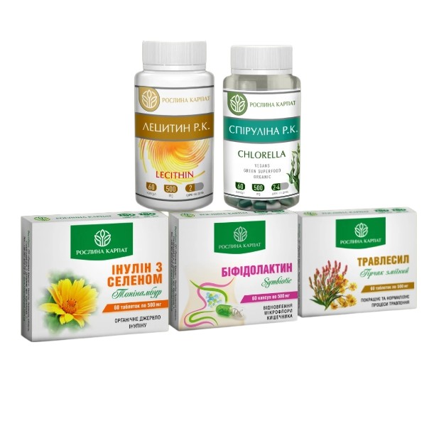 Програма відновлення від Рослина Карпат Лецитин Р.К., Травлесил, Інулін з селеном, Біфідолактин, Спіруліна Р.К. 5 препаратів
