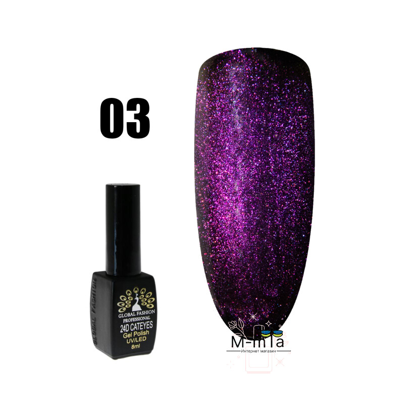 Froomo, маркетплейс професійної косметики та товарів для здоров'я\\Гель лак кошачий глаз 24D Global Fashion magic cat № 3