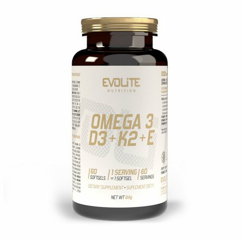 Жирні кислоти Evolite Nutrition Omega 3+D3+K2+E, 60 капсул