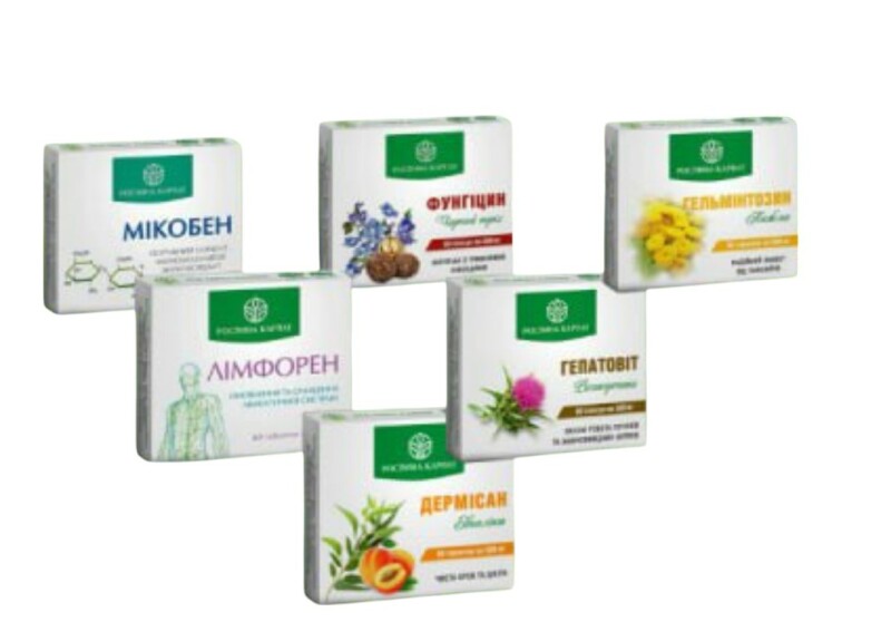 Комплекс Рослина карпат Мікобен, Дермісан, Фунгіцин, Гельмінтозин, Гепатовіт, Лімфорен 6 препаратів