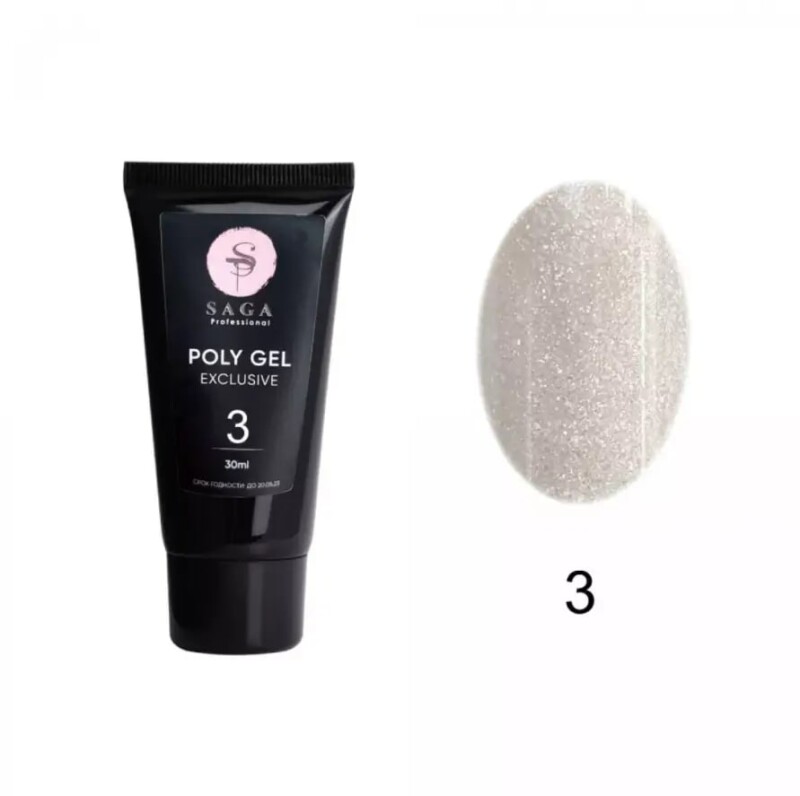 Полігель SAGA з шимером Professional Exclusive Poly GEL №03, 30 мл, 30.0