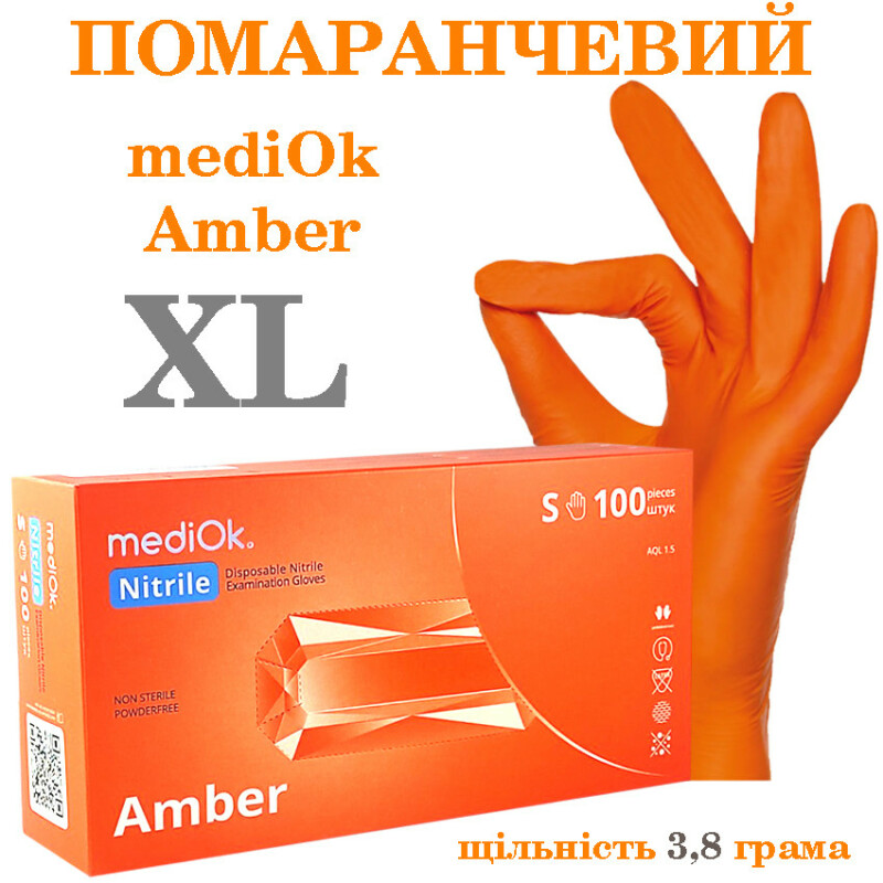 Рукавиці нітрилові помаранчевий Mediok Amber розмір XL, щільність 3.8 г, уп.100 шт