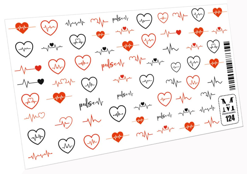 Froomo, маркетплейс професійної косметики та товарів для здоров'я\\Слайдер-дизайн для декору нігтів №124 Любов, серця, кардіограма