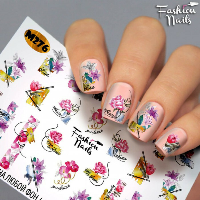 Слайдери водні наклейки КВІТИ Рослини Слайдер Дизайн Квіти для манікюру Fashion Nails М276