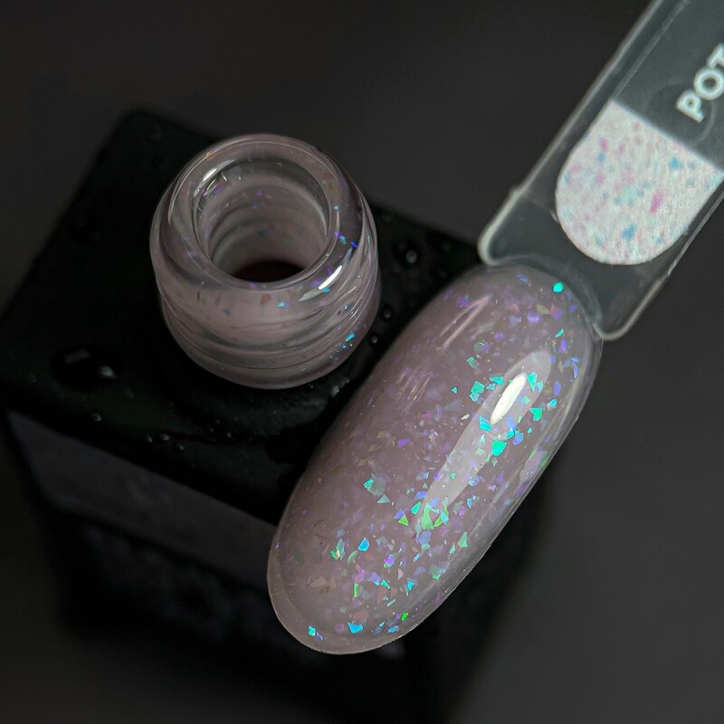 База Nails NAILSOFTHEDAY Potal base 19 ніжно-молочна з голографік стильною поталлю, 10 мл, 10.0