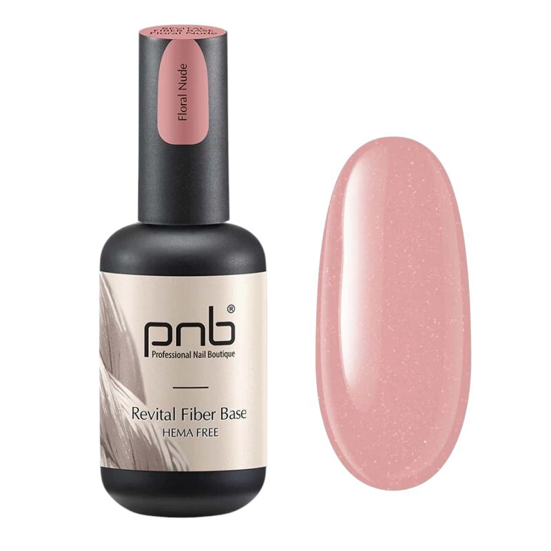 Froomo, маркетплейс професійної косметики та товарів для здоров'я\\Відновлююча база для нігтів з нейлоновими волокнами PNB Revital Fiber Base HEMA-Free Floral Nude, 17 ml