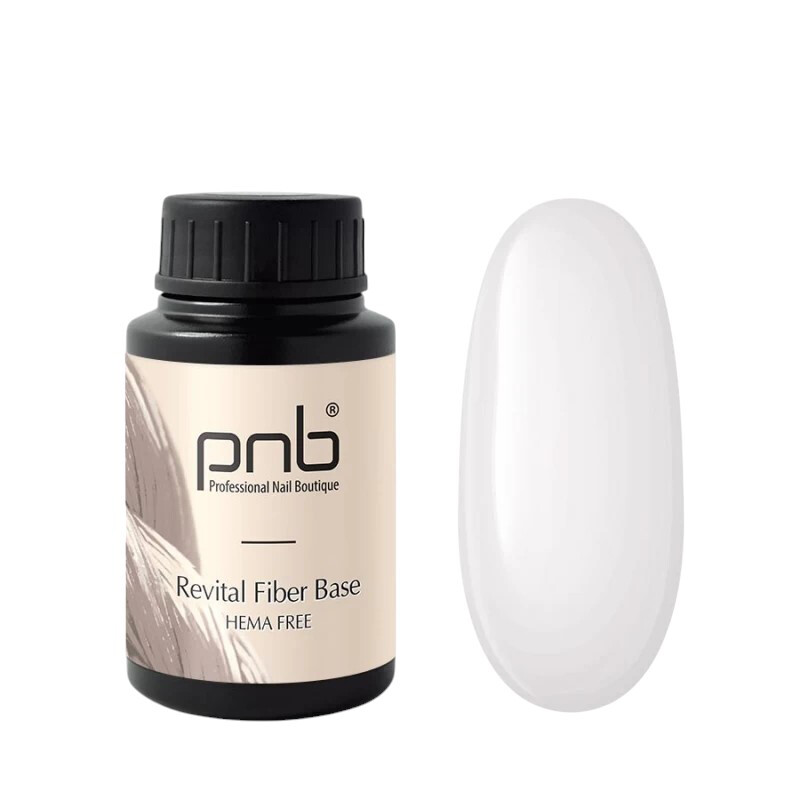 Froomo, маркетплейс професійної косметики та товарів для здоров'я\\Відновлююча база для нігтів з нейлоновими волокнами PNB Revital Fiber Base HEMA-Free Milk White, 30 ml