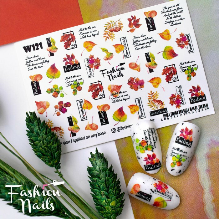 Froomo, маркетплейс професійної косметики та товарів для здоров'я\\Осінній слайдер дизайн Водні Наклейки для Нігтів Осіннє Листя Fashion Nails W121