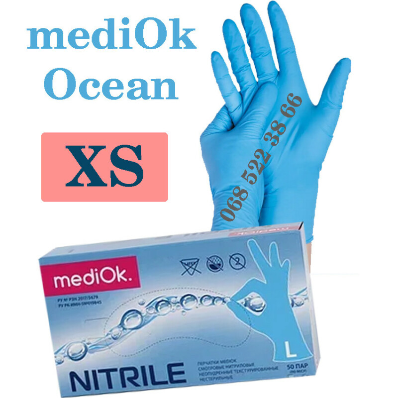 Рукавиці нітрилові блакитні Mediok розмір XS, щільність 3,5г, уп100 шт
