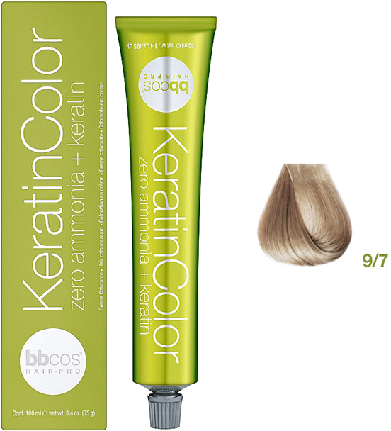 Фарба для волосся блондин дуже світло-бежевий Keratin Color 9/7