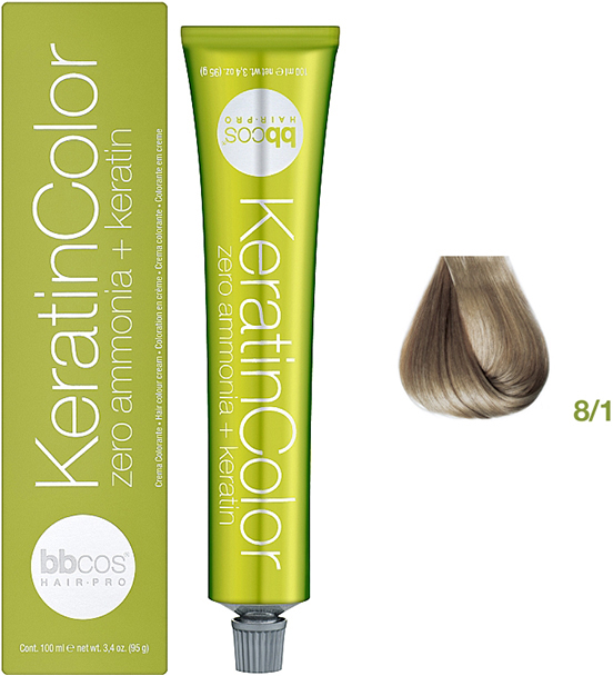 Froomo, маркетплейс професійної косметики та товарів для здоров'я\\Фарба для волосся блондин світло-попелястий Keratin Color 8/1