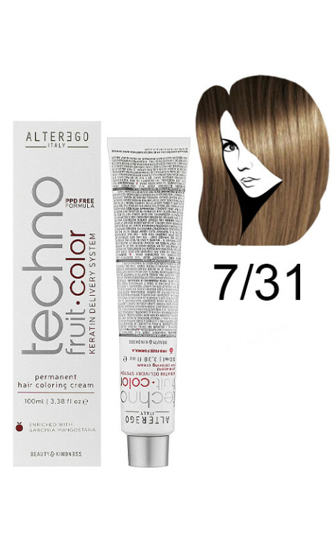 Froomo, маркетплейс професійної косметики та товарів для здоров'я\\Alter Ego Techno Fruit Color Permanent Крем фарба Технофрут Колор 7/31Золотисто попелястий блондин