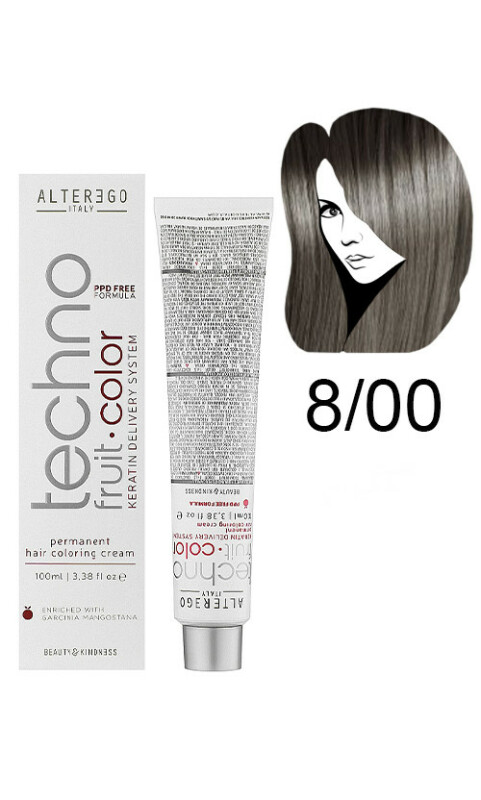 Froomo, маркетплейс професійної косметики та товарів для здоров'я\\Alter Ego Techno Fruit Color Permanent Крем фарба Технофрут Колор 8/00 Світлий насичений блондин