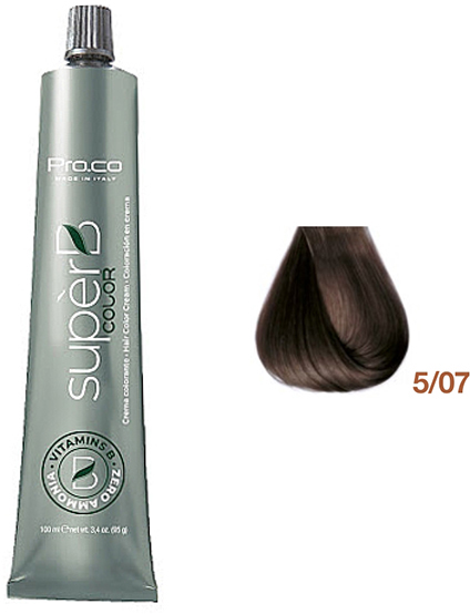 Froomo, маркетплейс професійної косметики та товарів для здоров'я\\Безаміачна фарба для волосся Super B Hair Color Cream 5/07