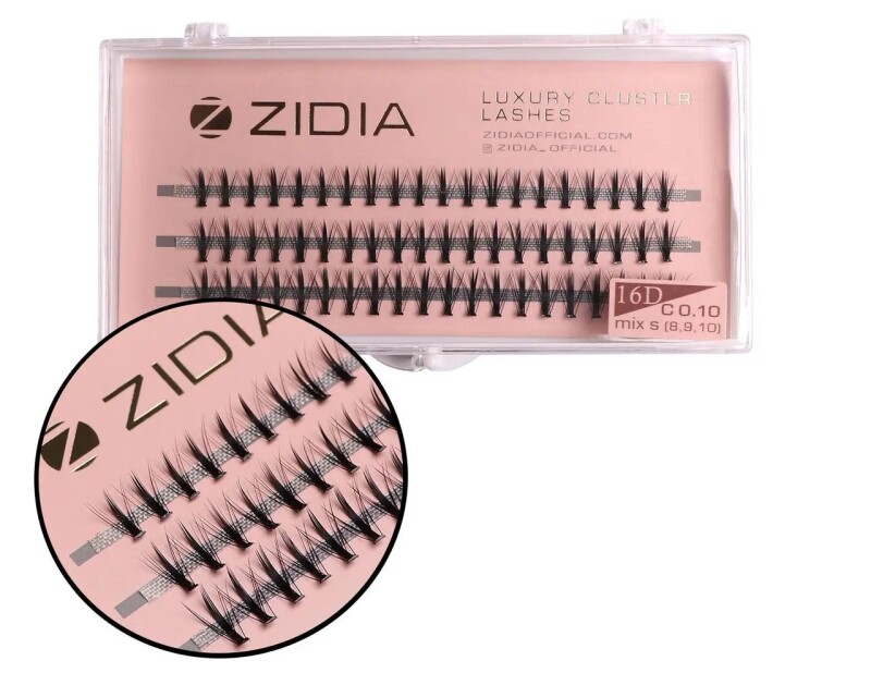 Froomo, маркетплейс професійної косметики та товарів для здоров'я\\Вії пучкові ZIDIA Cluster Lashes 16D KIM C 0,10 MIX S 8 9 10 мм, 3 стрічки