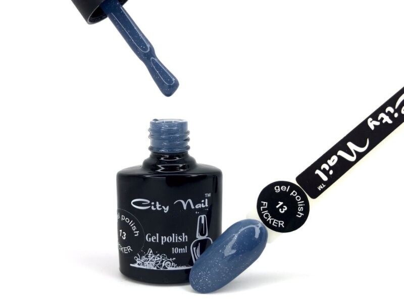 Гель лак City Nail серія FLICKER №13 глітерний сіро-синій з блискітками 10
