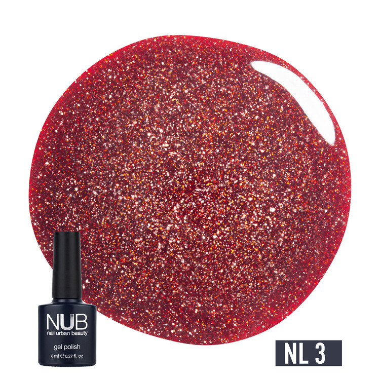 Froomo, маркетплейс професійної косметики та товарів для здоров'я\\Гель-лак зі світловідбиваючим ефектом NUB Gel Polish Night Light №03 - Red Sparks, 8 ml