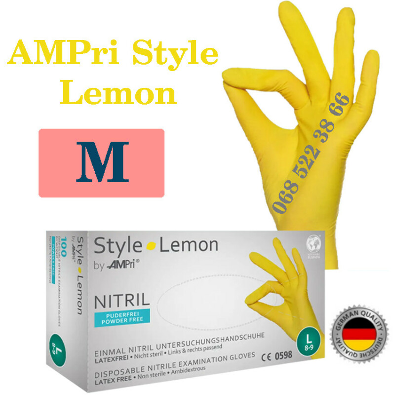 Рукавиці нітрилові жовтий AMPri Style Lemon розмір M, щільність 4г, уп.100 шт
