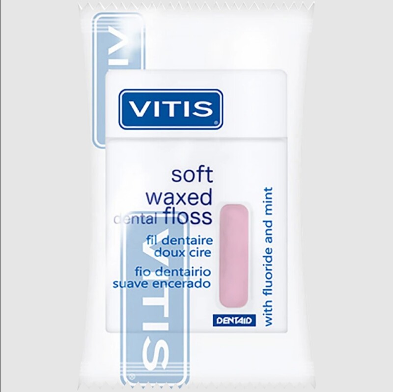 Froomo, маркетплейс професійної косметики та товарів для здоров'я\\Зубна нитка DENTAID VITIS м'яка розширюючася з фтором та м'ятним смаком 50 м блістер