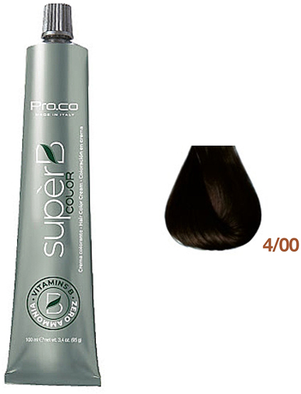 Froomo, маркетплейс професійної косметики та товарів для здоров'я\\Безаміачна фарба для волосся Super B Hair Color Cream 4/00