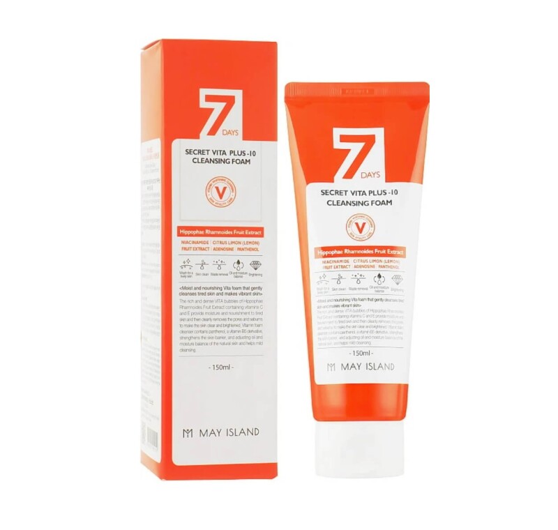 Froomo, маркетплейс професійної косметики та товарів для здоров'я\\Вітамінізуюча та освітлююча пінка для вмивання 7 Days Secret Vita Plus-10 Cleansing Foam May Island 150 мл