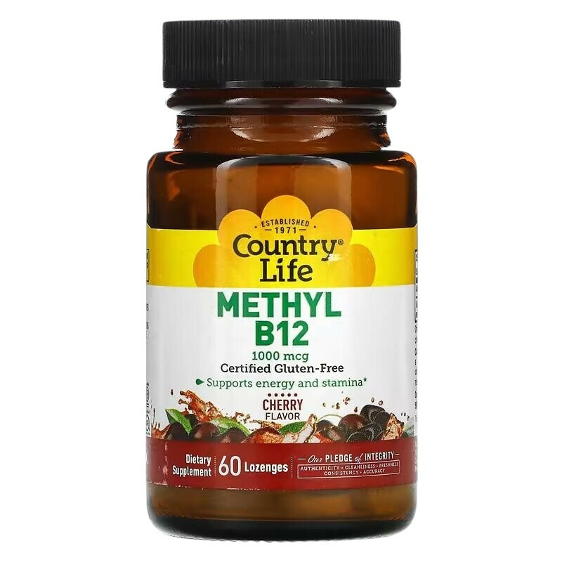 Froomo, маркетплейс професійної косметики та товарів для здоров'я\\Вітаміни та мінерали Country Life Methyl B12 1000 mcg, 60 льодяників Вишня
