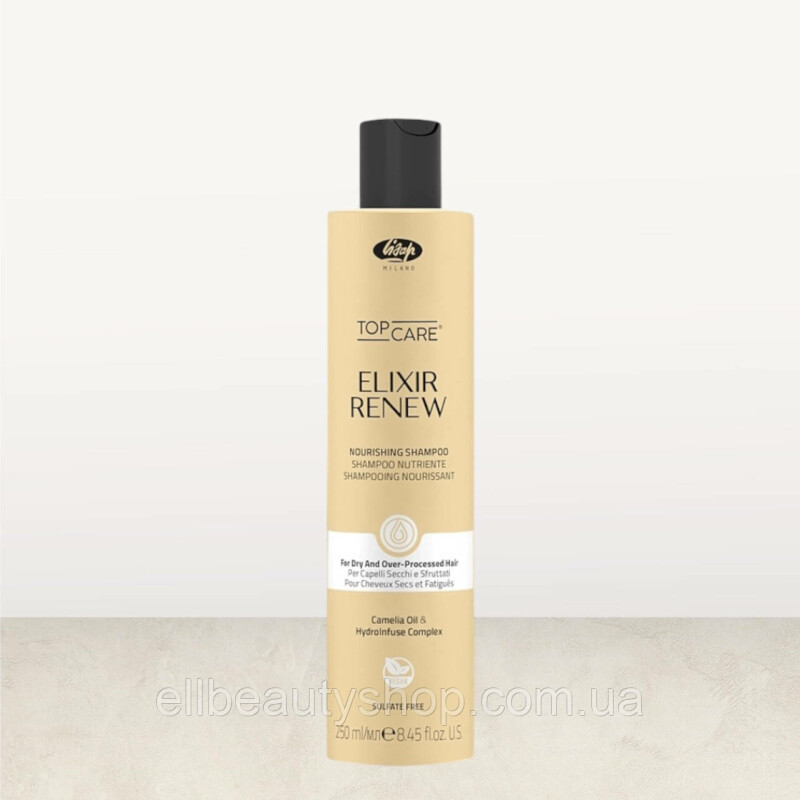 Froomo, маркетплейс професійної косметики та товарів для здоров'я\\Живильний та зволожуючий шампунь Lisap Elixir Renew Nourishing Shampoo 250 мл