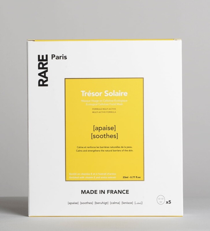 Набір з п'яти заспокійливих масок для обличчя RARE Paris Trésor Solaire з Вітаміном Е та екстрактом арніки
