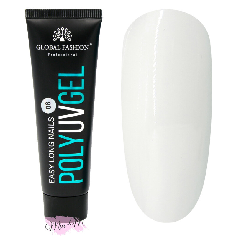 Полигель Global Fashion Poly UV Gel №08 белый, 30 мл