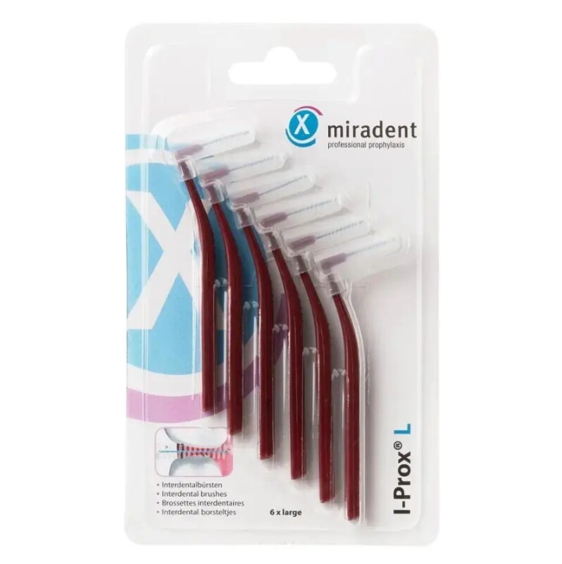 Froomo, маркетплейс професійної косметики та товарів для здоров'я\\Ручний інтердентальний йоржик Miradent I-Prox L, йоржик для чищення брекетів бордовий (5,0 мм) набір 6 шт