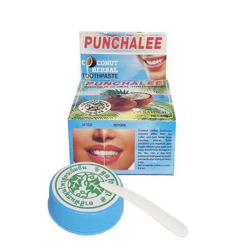 Froomo, маркетплейс професійної косметики та товарів для здоров'я\\Тайська відбілююча зубна паста Punchalee з травами та кокосом 25 гр