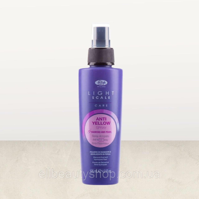 Froomo, маркетплейс професійної косметики та товарів для здоров'я\\Термозахисний спрей проти жовтизни волосся Lisap Light Scale Anti Yellow spray з пилом діамантів 125мл