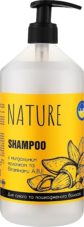 Шампунь з мигдальним молочком і вітамінами для сухого та пошкодженого волосся Nature Shampoo